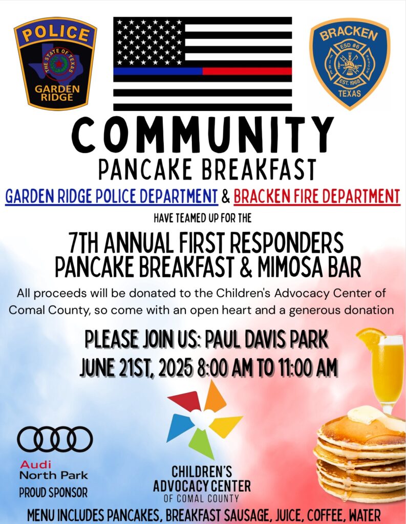 Everyone is invited to come to the park for pancakes and mimosas in support of the Children’s Advocacy Center of Comal County. Let’s come together as a community to help these children who need so much love and support!